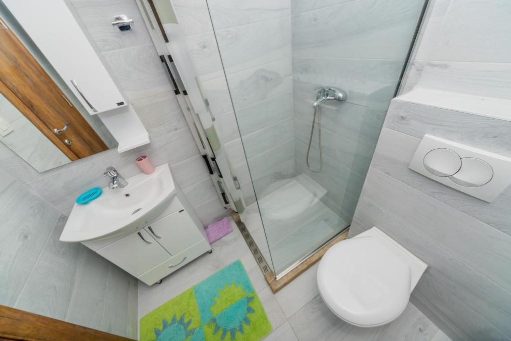 tuš, fen za kosu, besplatni toaletni pribor, toalet, papuče, kada ili tuš, peškiri, toalet papir, tuš bez praga, šampon, sapun za telo, kapa za tuširanje